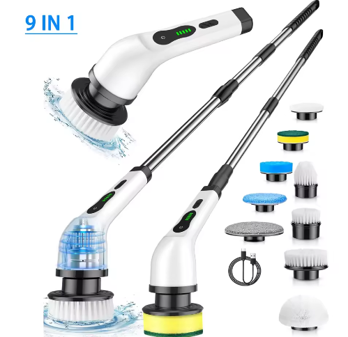A escova rotativa 9 em 1 torna a limpeza mais rápida e mais simples 💨 Graças às suas cabeças intercambiáveis e ao cabo extensível, alcança todos os cantos sem esforço 🙌 A sua rotação potente remove sujidade incrustada sem danificar as superfícies 💧 Resistente à água, leve e sem fios, oferece até 90 minutos de autonomia.✨ Com apenas uma passagem, tudo fica limpo e brilhante! Uma ferramenta versátil que transforma a tarefa da limpeza num verdadeiro prazer 😍