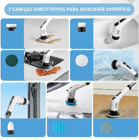 Simplifique as suas tarefas domésticas com a escova elétrica multifunções 9 em 1 ✅ O seu motor potente e as 9 cabeças de limpeza eliminam gordura, calcário e pó